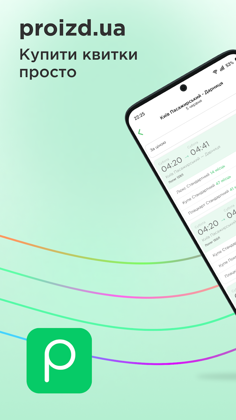 Даний додаток - найшвидше та найпростіше рішення для купівлі залізничних квитків в Україні. Починаючи з 2012 року, з його допомогою було придбано більше 6 мільйонів квитків. З додатком ви зможете купити, зберегти, поділитися і використати квиток.