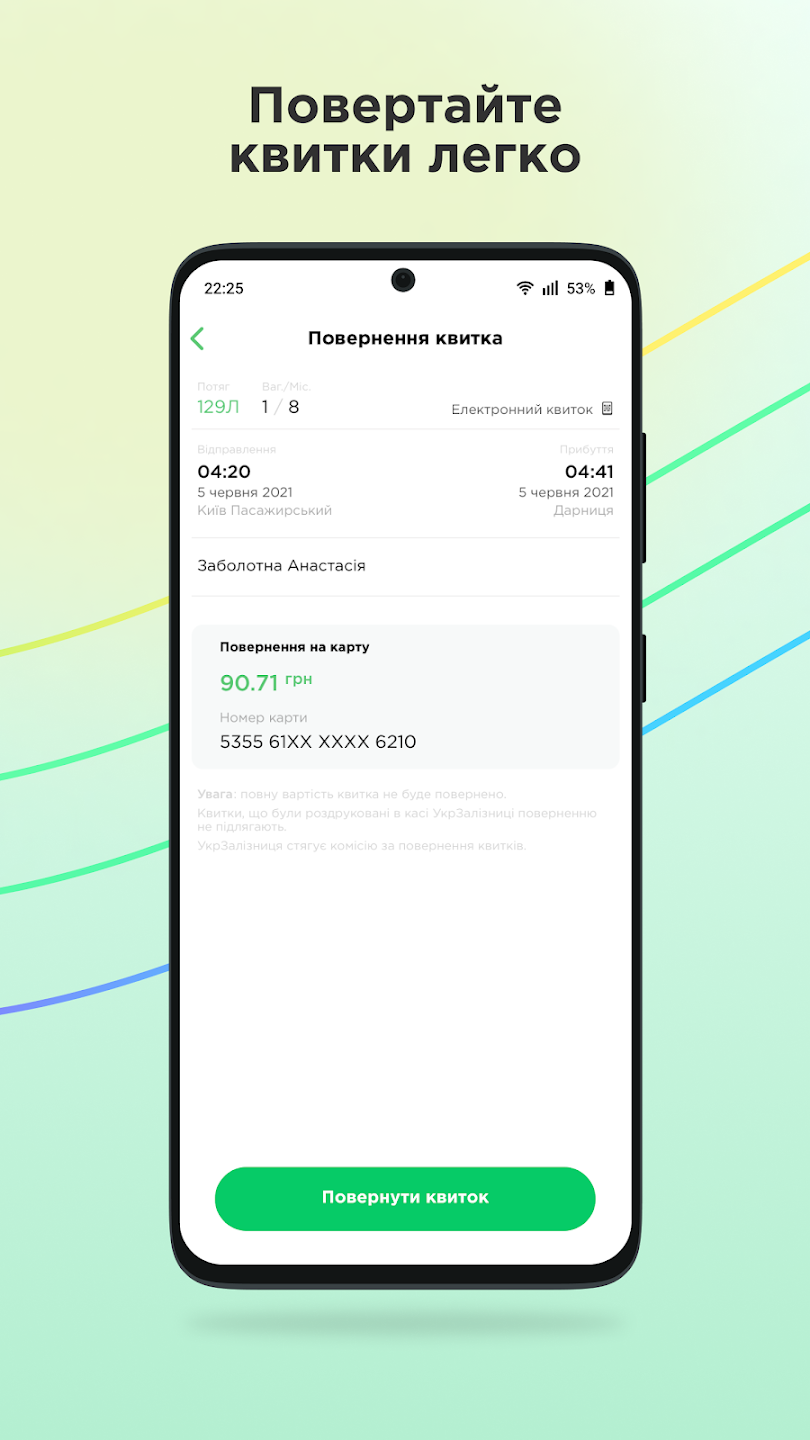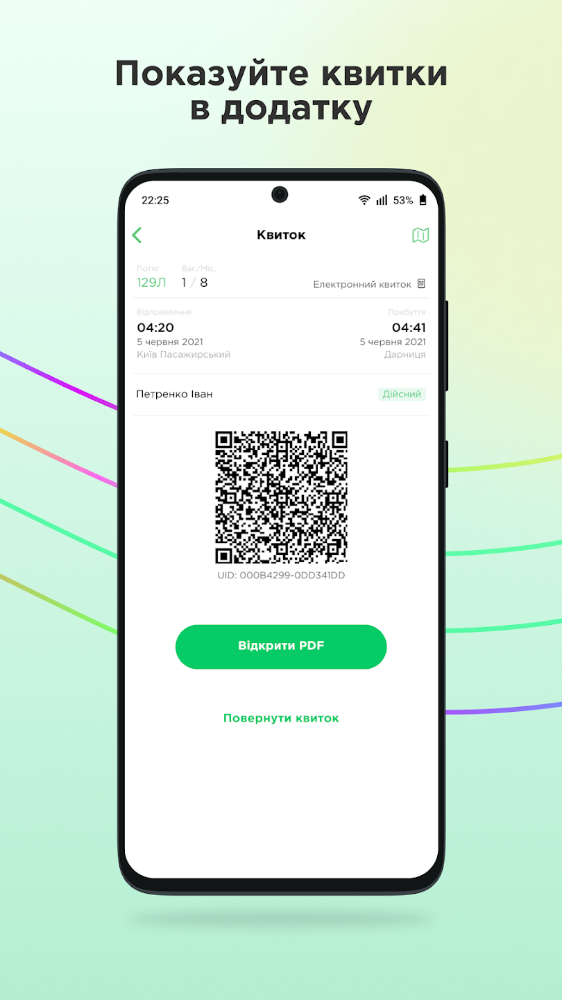 - після купівлі, квитки залишаться на вашому смартфоні навіть без підключення до Інтернету;