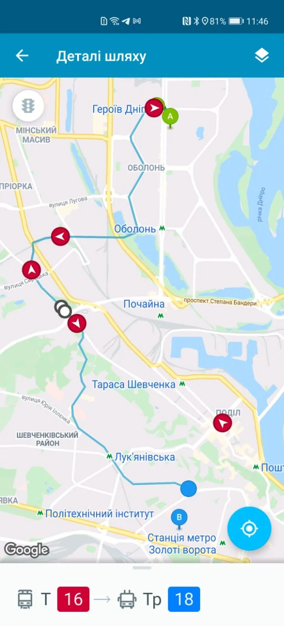 За допомогою додатку ви легко зможете скласти оптимальний маршрут руху, тим самим заощадивши свій час на переміщення до пункту призначення. Застосунок надає актуальну інформацію про маршрути та час відправлення громадського транспорту.