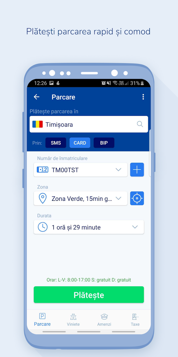 - можливість сплатити штраф за паркування в кількох містах Румунії