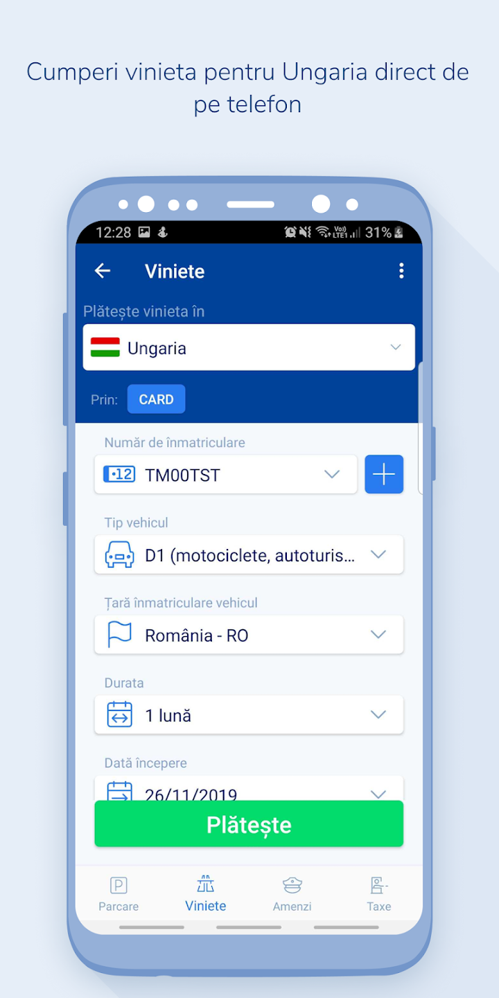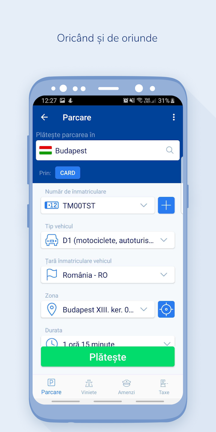 Додадок для оплати паркування автомобіля в Румунії та Угорщині. Послуга доступна в понад 60 містах Румунії.