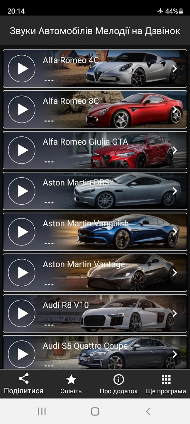 У цьому додатку ви знайдете тільки найкращі автомобільні звуки:- топових спортивних