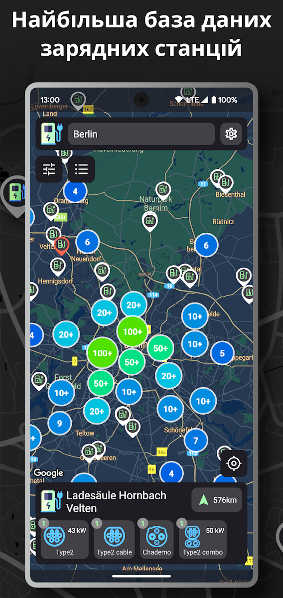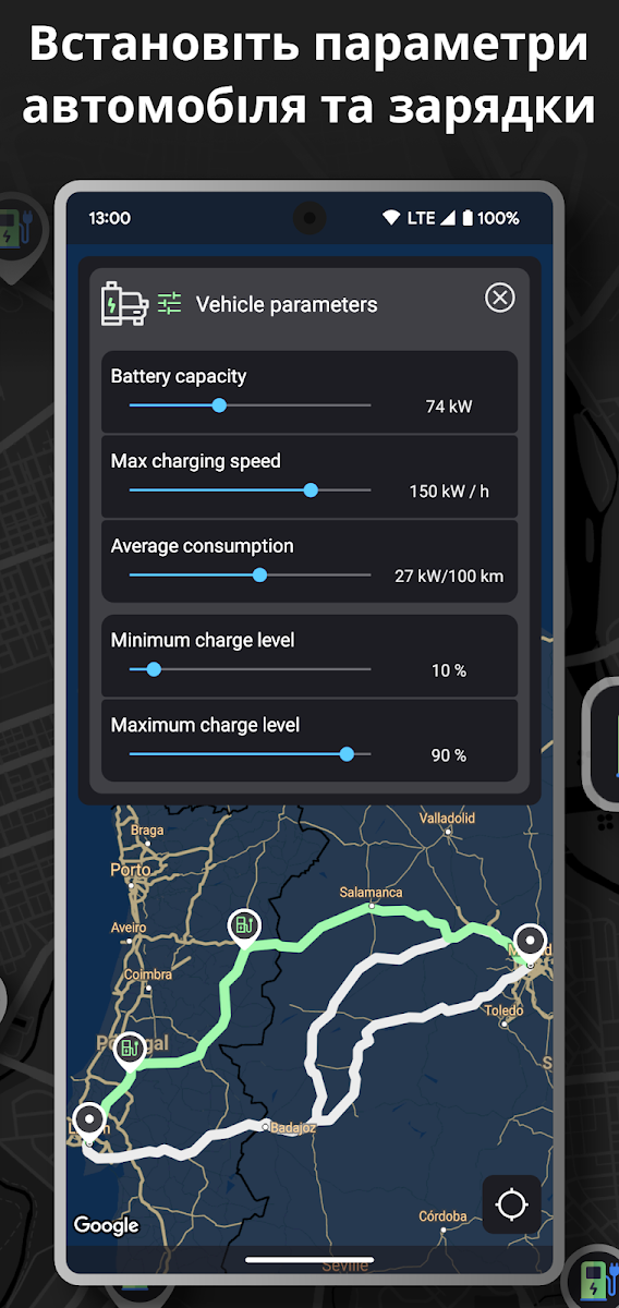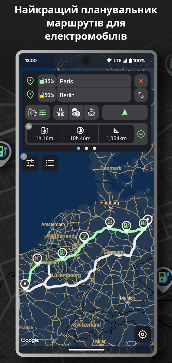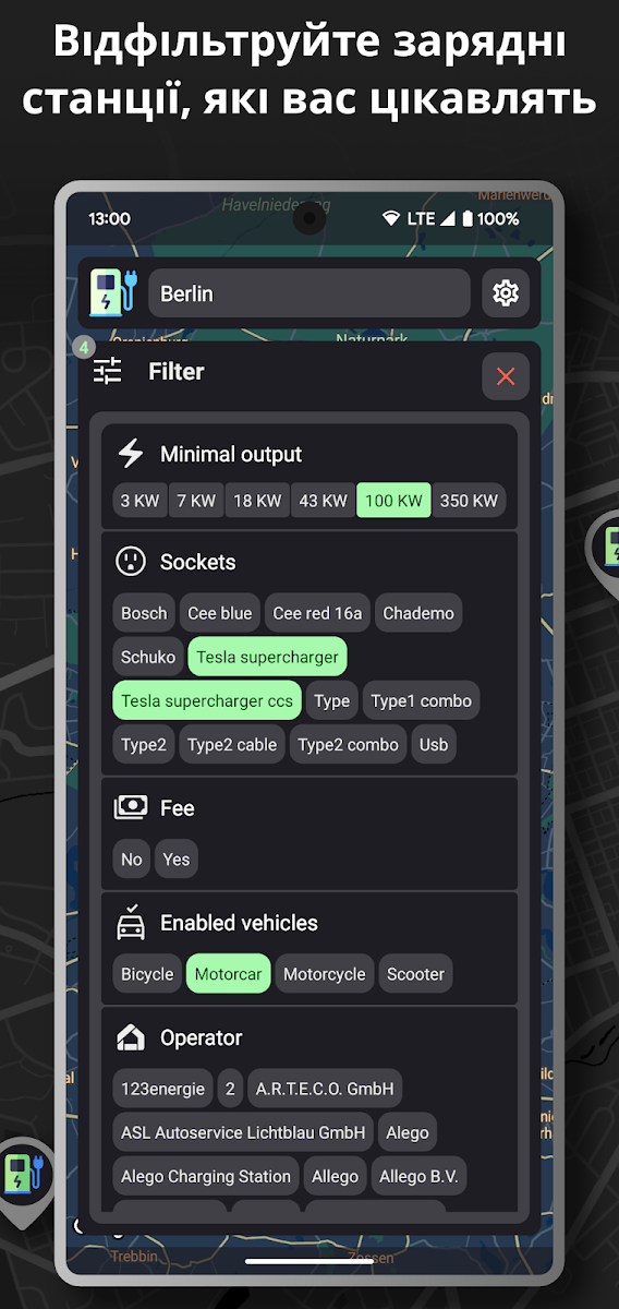 Основні переваги:- фільтрувати зарядні станції відповідно до ваших уподобань за типом розетки, швидкістю заряджання, типом електромобіля чи постачальником послуг заряджання