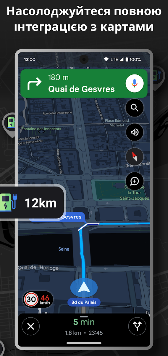 - штучний інтелект планує оптимізований маршрут для вашого електромобіля з маршрутом заряджання
