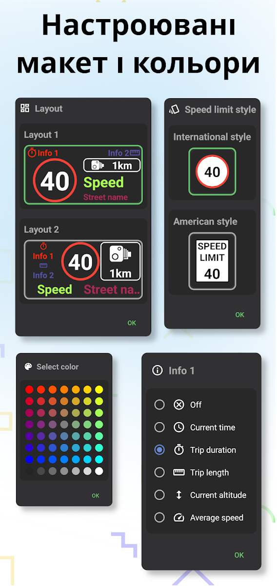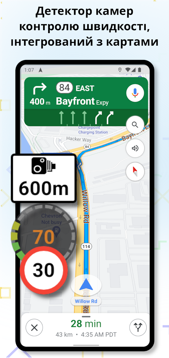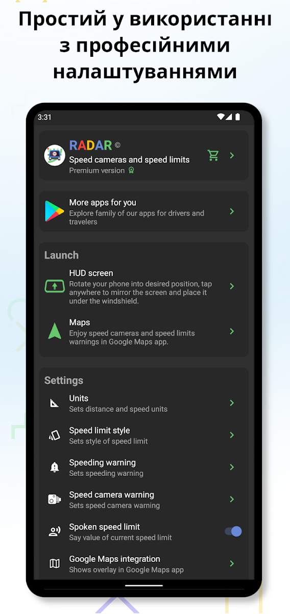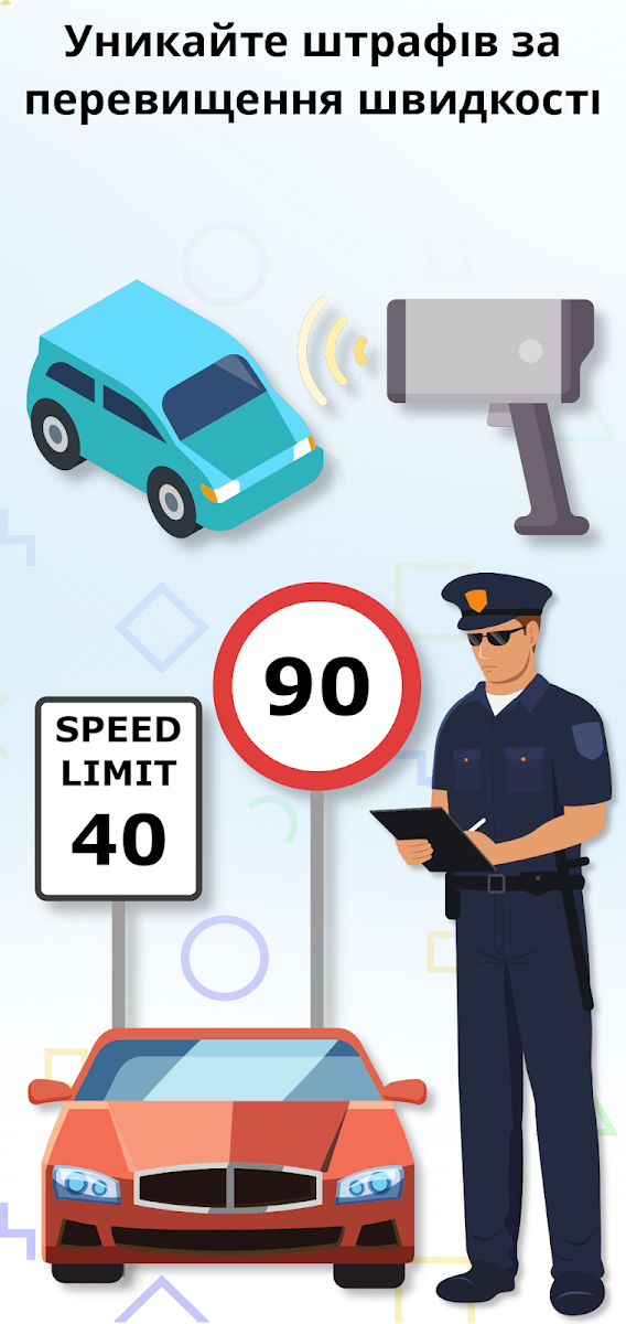 - звукове сповіщення, коли поблизу виявлено камеру контролю швидкості