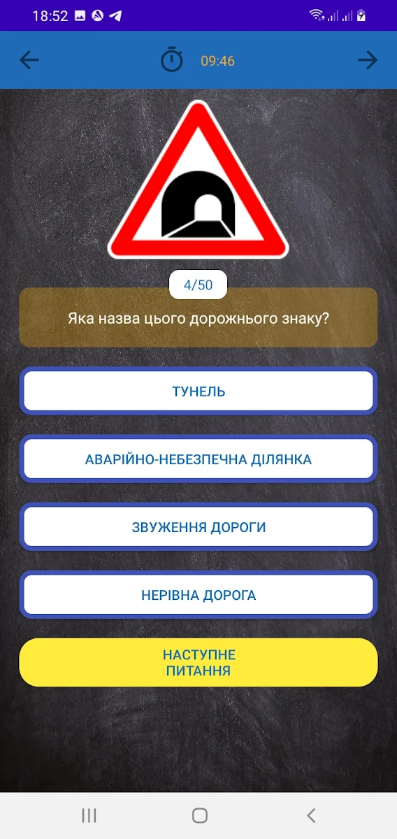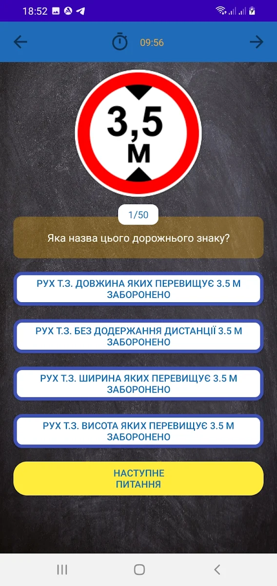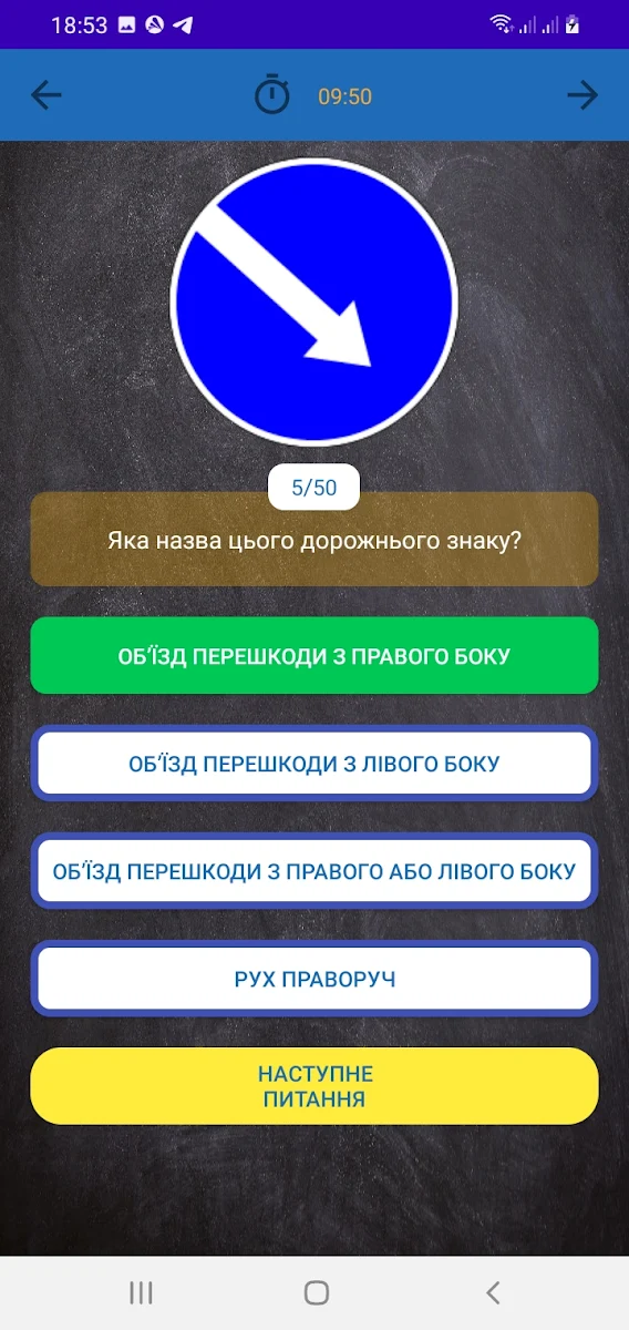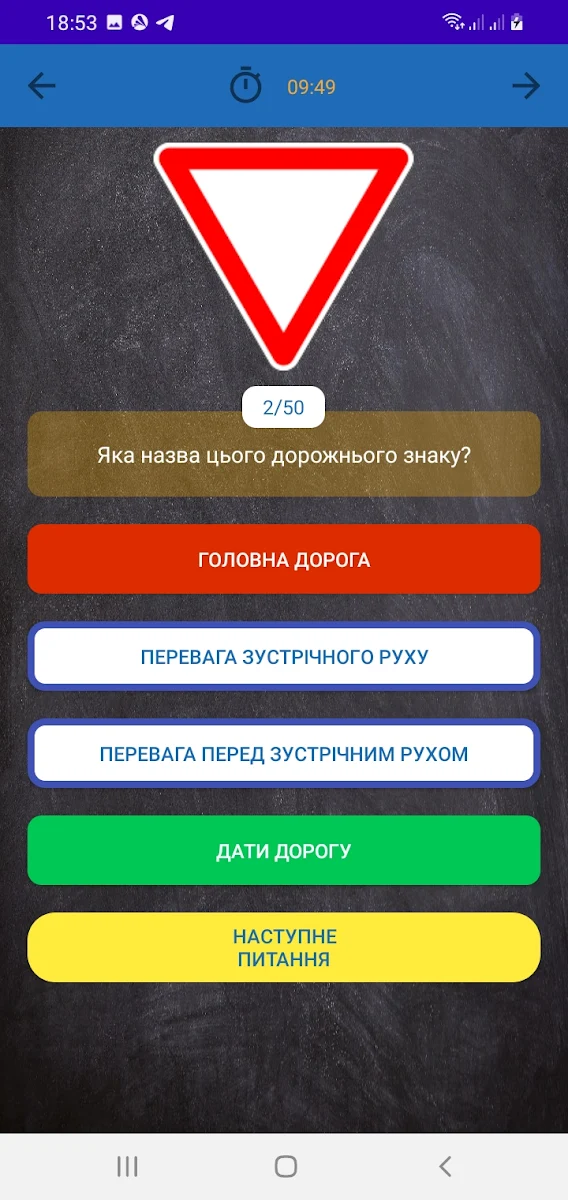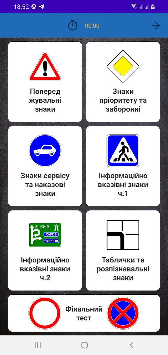 Додаток містить усі дорожні знаки України та їх значення за останніми Правилами дорожнього руху.