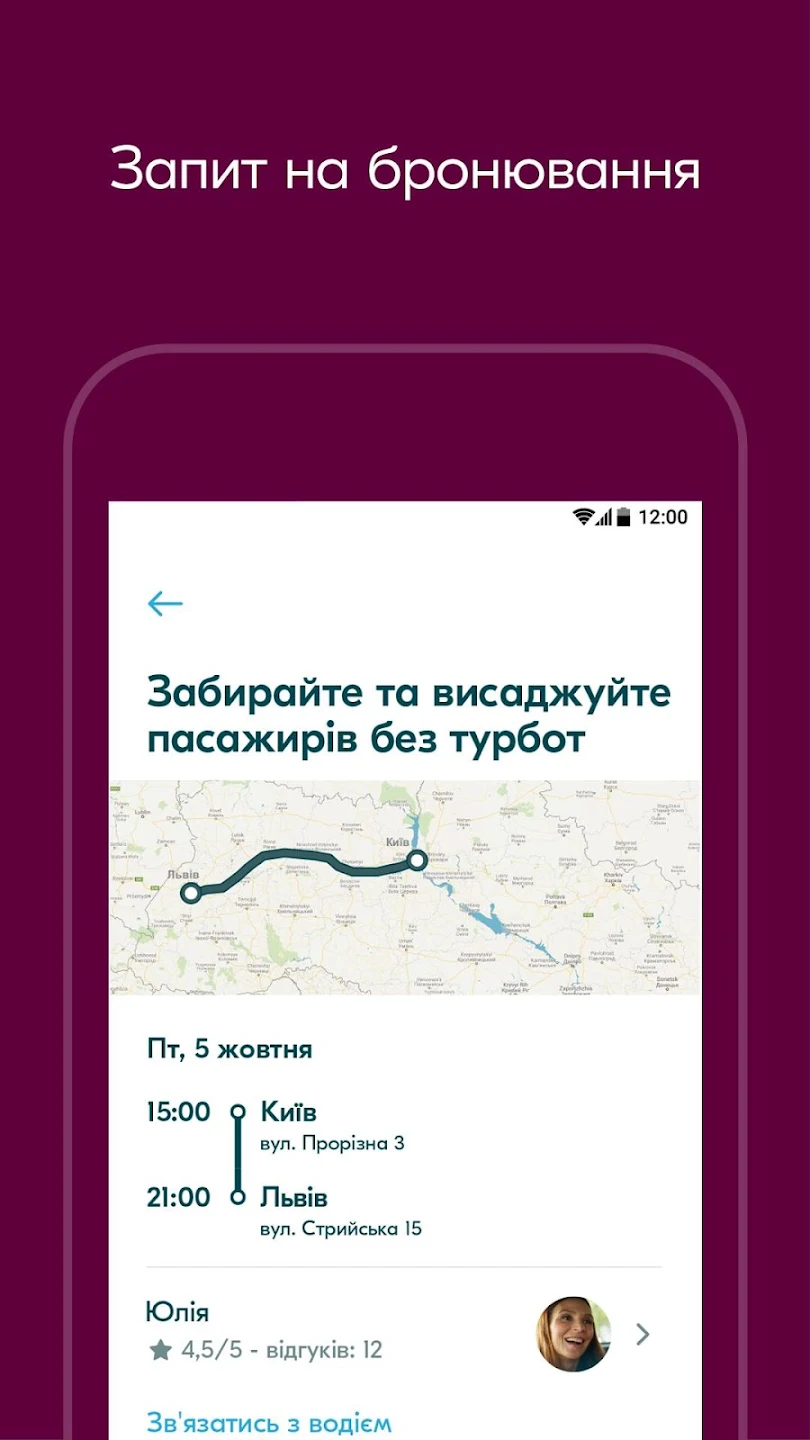 BlaBlaCar об'єднує водіїв та пасажирів у потрібному місці у потрібний час, щоб вони могли подорожувати разом та ділити витрати на поїздку. Як водій, ви можете опублікувати поїздку в кілька кліків, щоб економити на бензині і подорожувати в приємній компанії!