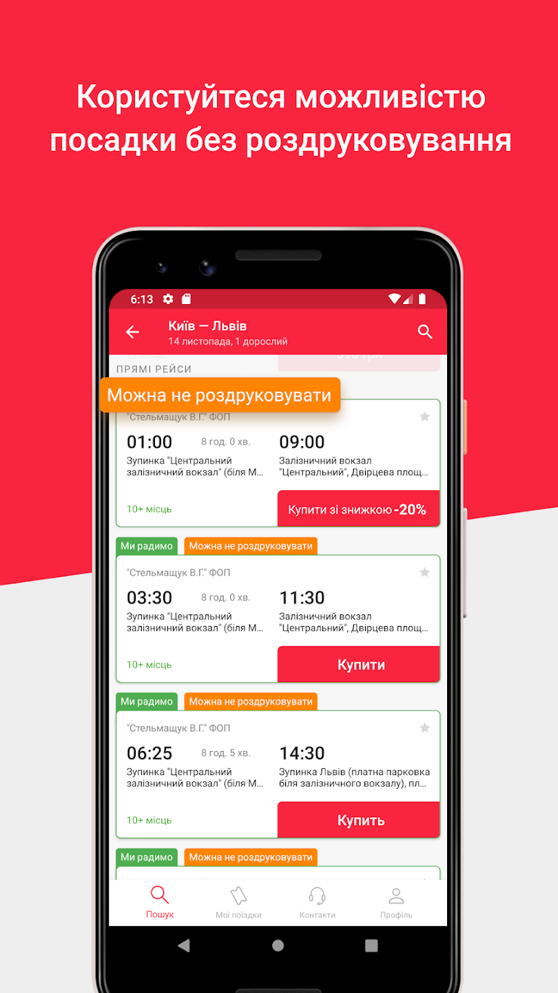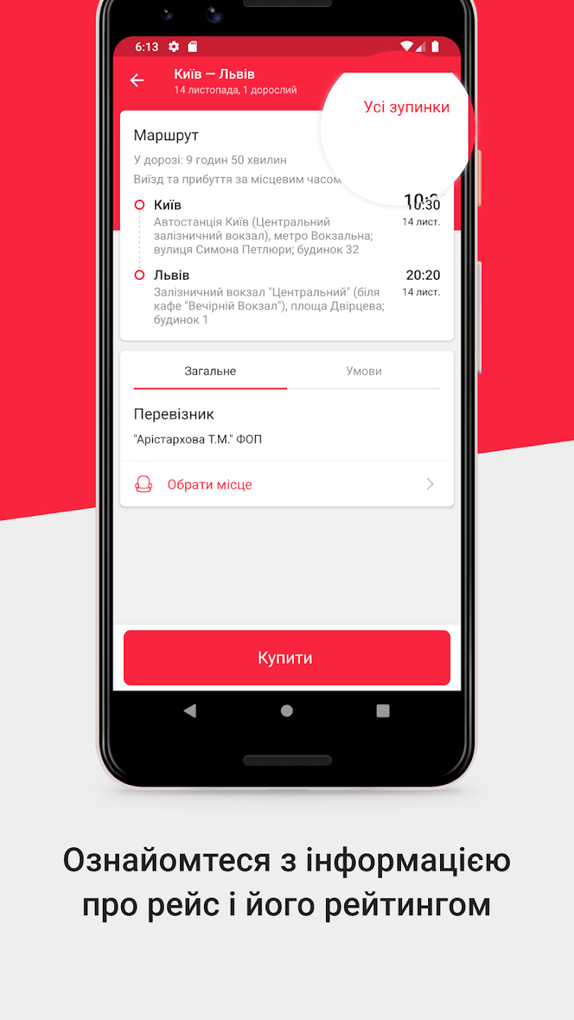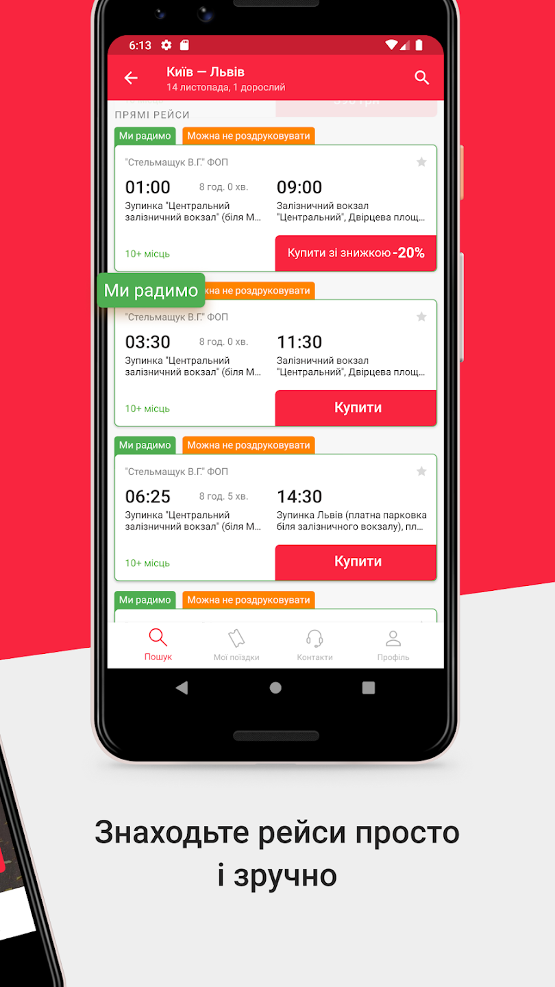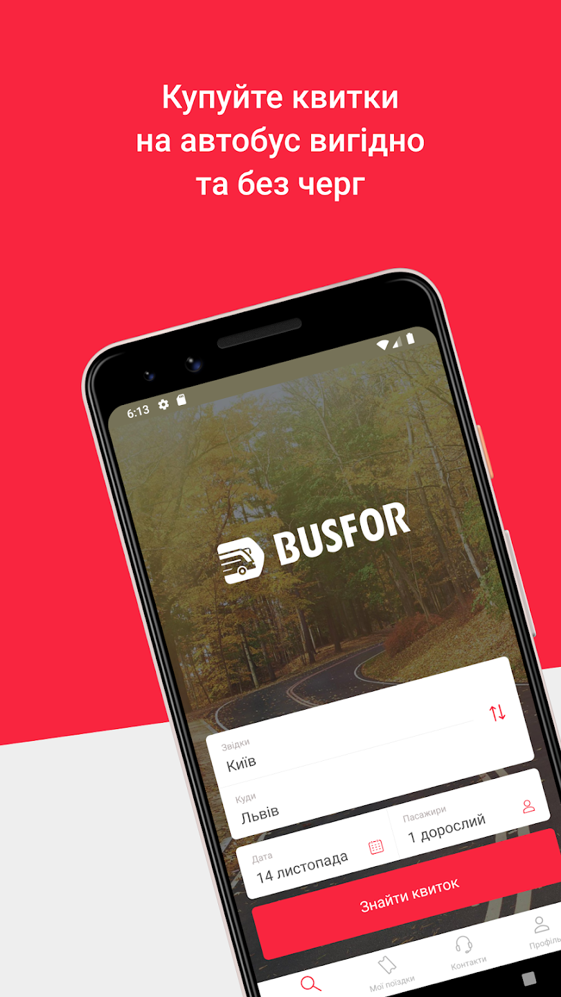 BUSFOR - це зручний сервіс, що забезпечує легкий пошук та купівлю квитків на автобус прямо зі смартфона. Тепер не треба їхати на автовокзал, стояти у чергах та гаяти час.