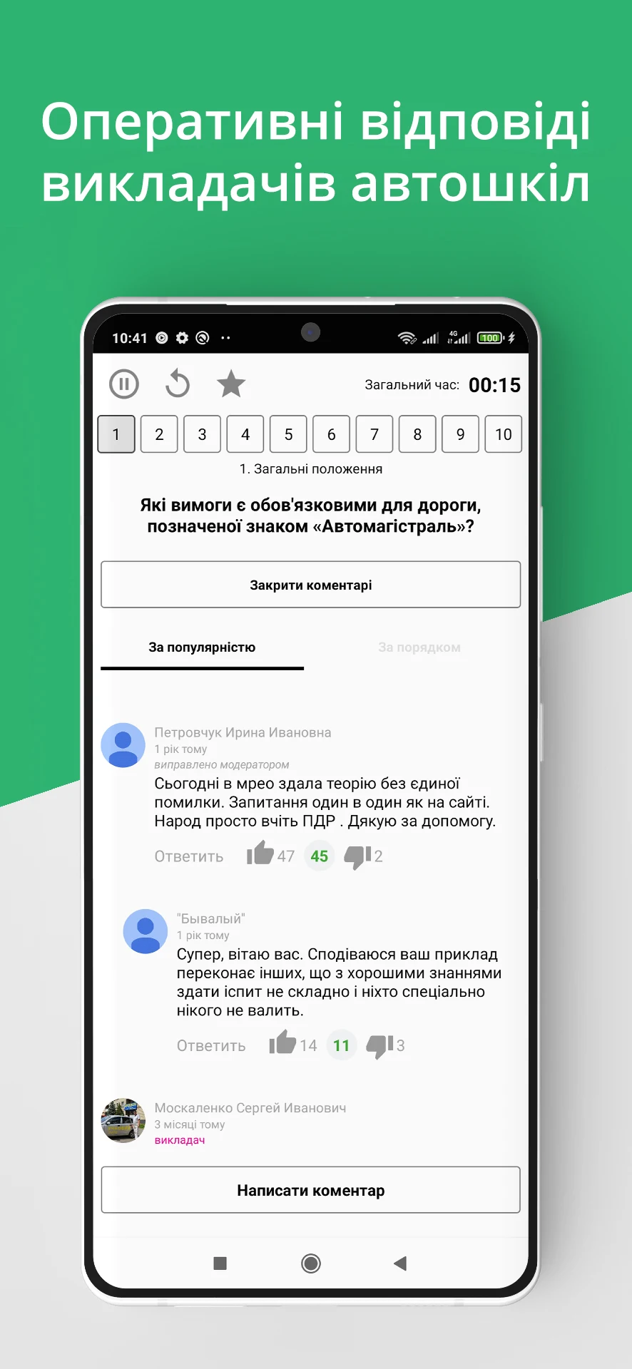 Більше 2000 питань з коментарями від викладачів автошкіл.