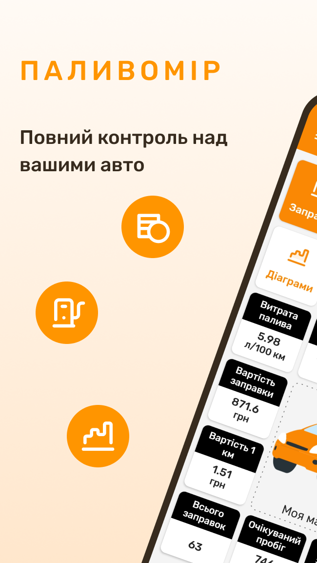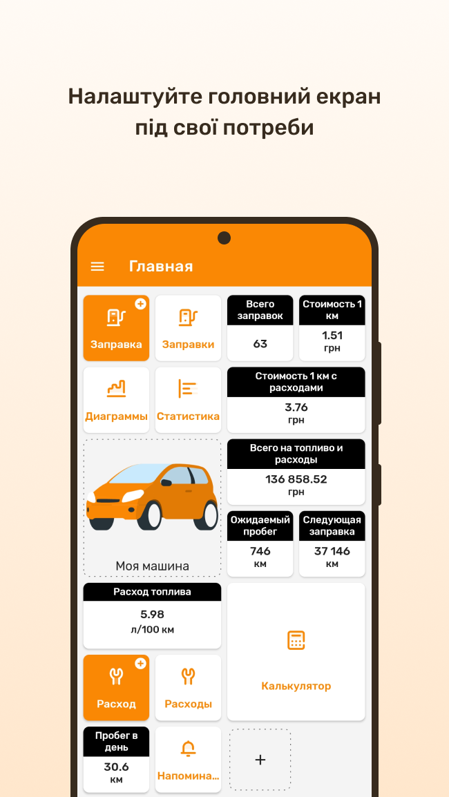 Додаток призначений для розрахунку середньої витрати палива. Найбільш правильні розрахунки будуть, якщо заправлятися червоною лампочкою, неважливо, який обсяг.