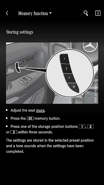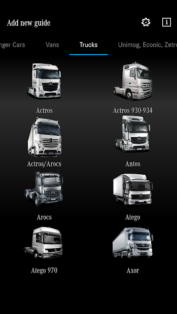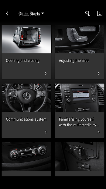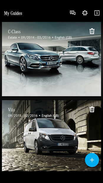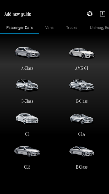 Додаток Mercedes-Benz Guides містить інформацію про користування функціями автомобіля. Після першого запуску програми у розділі Мої гіди користувач отримує доступ до всіх доступних моделей.