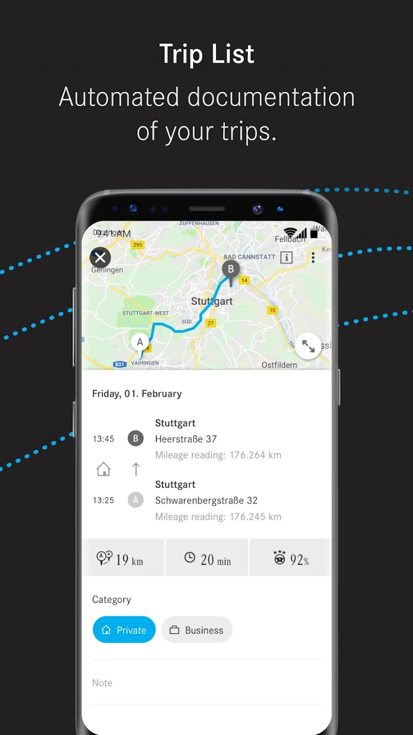 Статистика – все під контролем. Вам доступний огляд усієї інформації про поїздки, заправки, а також Ваш особистий рахунок Driver Score. Поїздки можна поділити на особисті чи ділові.
