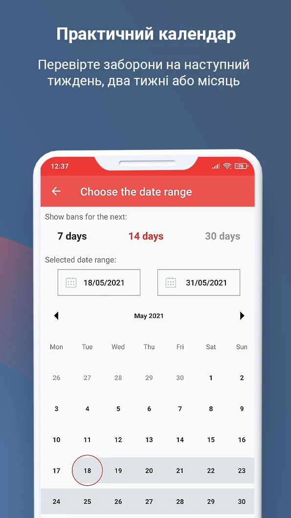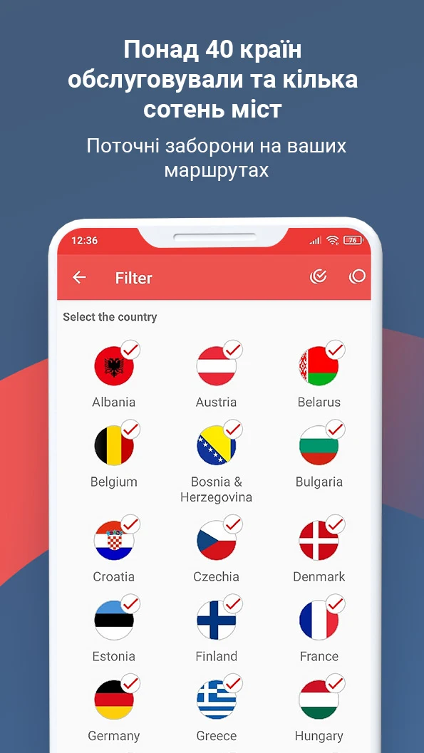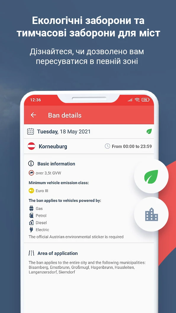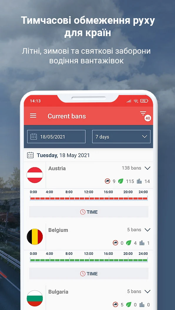 Додаток показує тимчасові та постійні обмеження та заборони для вантажівок по різних країнах.