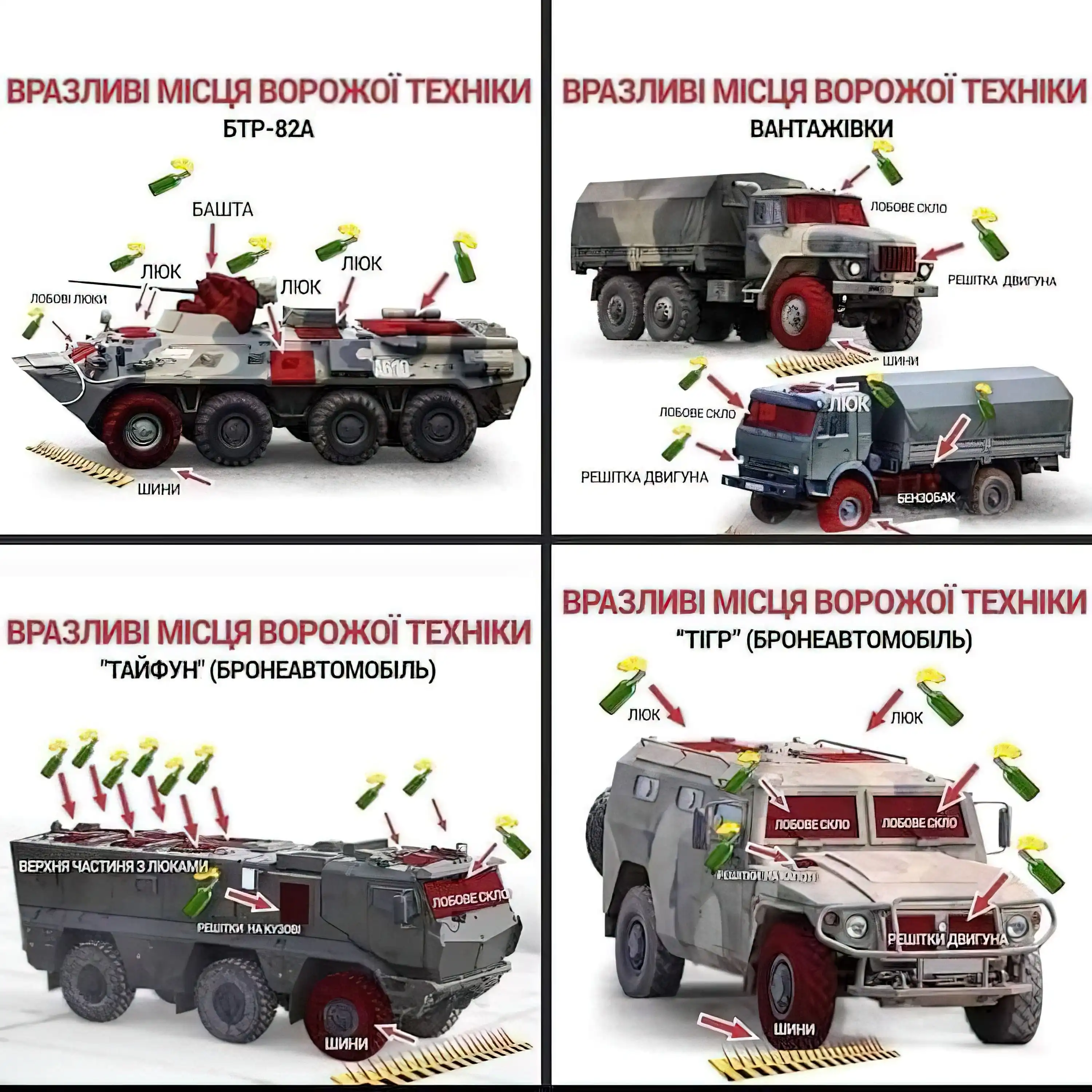 Військові вантажівки, броньовики та танки створені таким чином, щоб їх було важко знешкодити. Але це можливо, якщо знати їх вразливі місця.