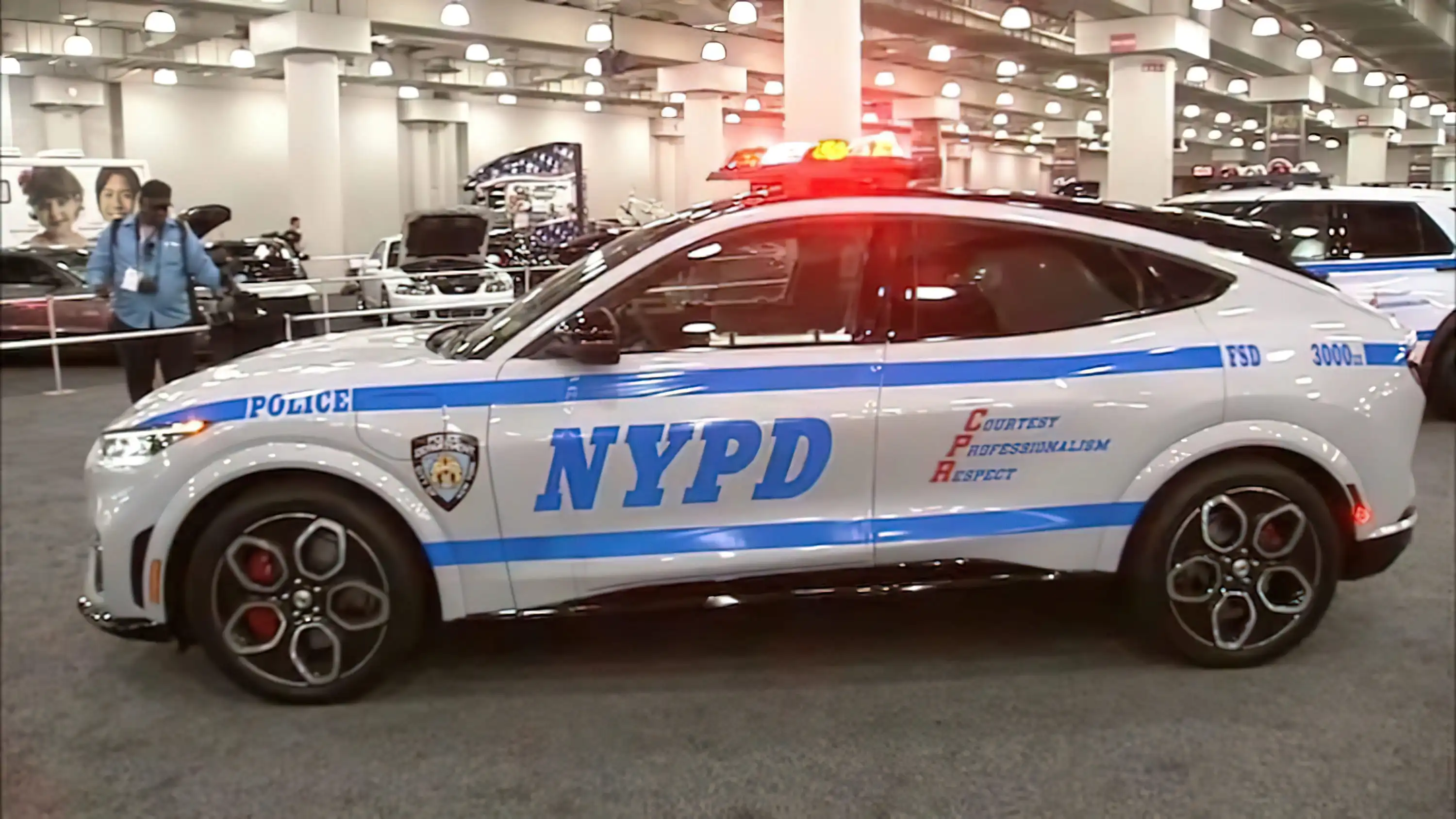 Спеціальну версію Ford Mustang Mach-E для поліції було представлено на міжнародному автосалоні в Нью-Йорку. Завдяки введенню електрокара в експлуатацію Департамент поліції Нью-Йорка демонструє наміри знизити викиди CO2 свого автопарку. Ще з 2020 року NYPD купував машини з гібридними силовими установками, а вже в 2021 році був придбаний електрокар Tesla Model 3.