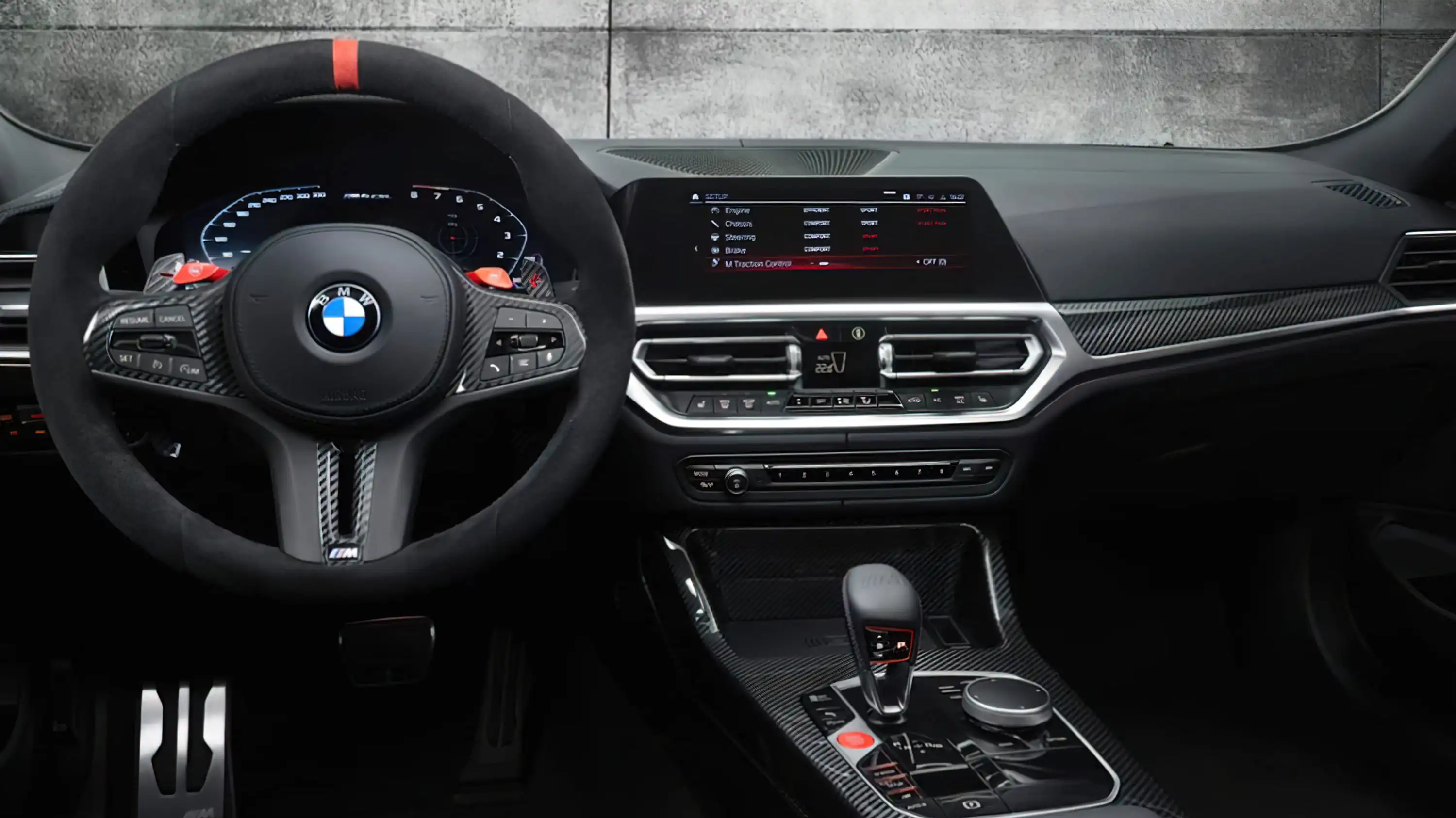 Нова BMW M4 CSL не отримала сучасного «цифрового кокпіту» із здвоєним дисплеєм: купе оснащують роздільними екранами для панелі приладів (12,3 дюйми) та медіасистеми (10,25 дюйми). Система включає список гоночних режимів з телеметрією. Крім цього, в обробці салону збільшено частку карбону, а також алькантари.