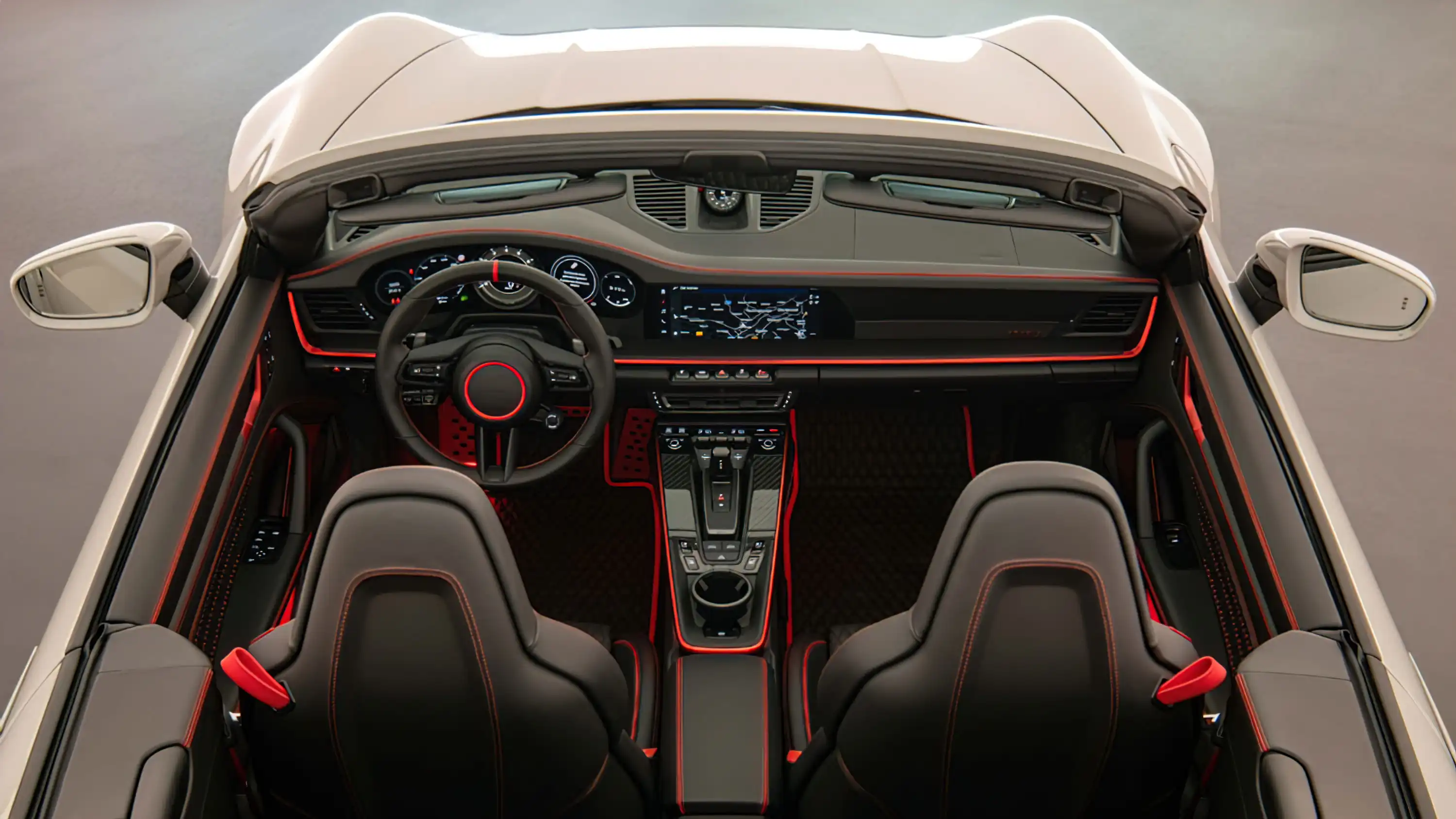 Демонстраційний автомобіль Porsche 911 отримав оброблений чорною шкірою з червоними елементами салон, вставки з вуглепластику, а також ряд фірмових аксесуарів ательє Brabus: накладки на пороги, що мають підсвічування, алюмінієві накладки на педалі та нові килимки в салон.
