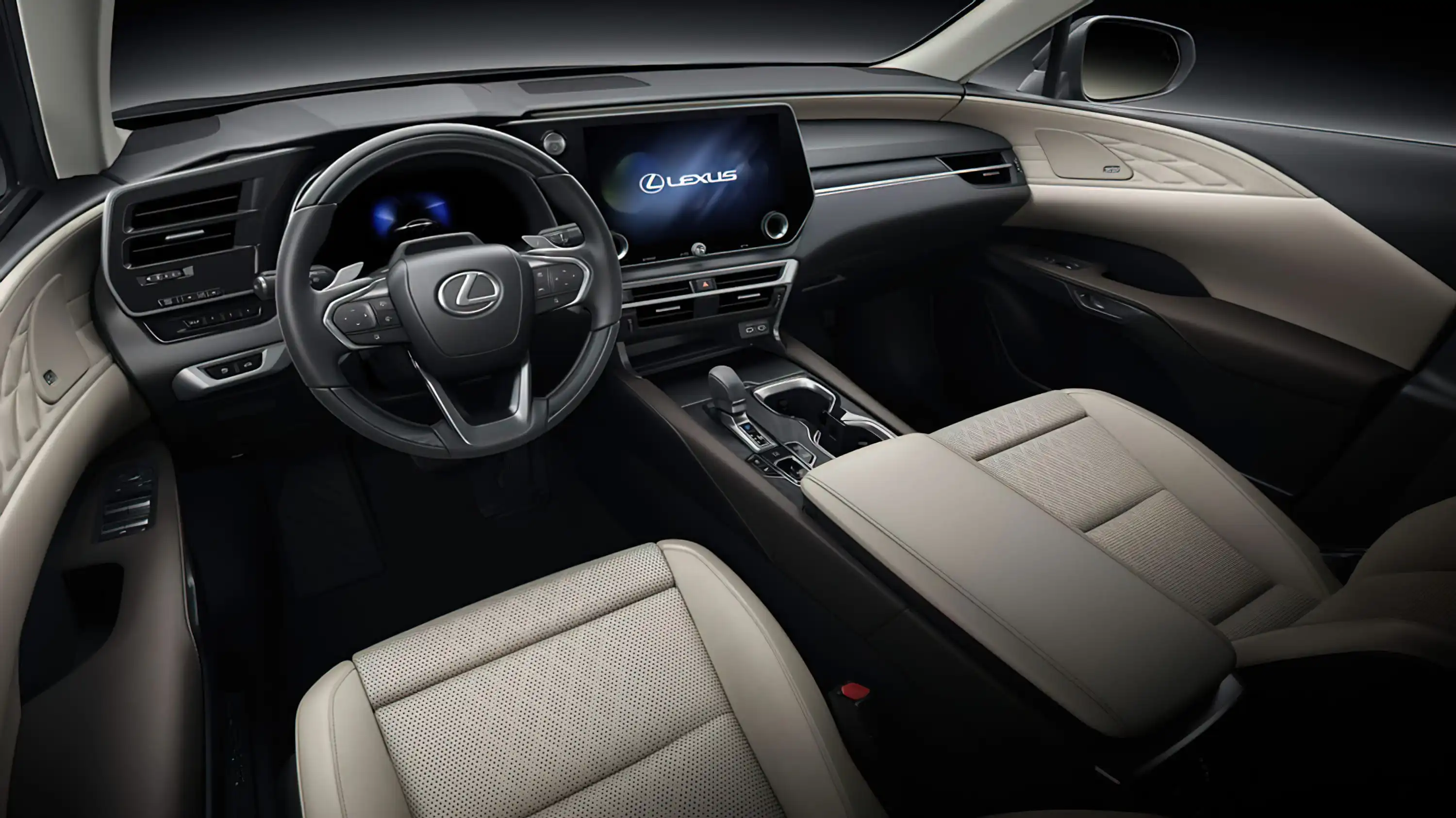 Сильно змінився й салон Lexus RX. Позбувшись звичних дверних ручок (тепер двері відчиняються з кнопки, як у новому кросовері NX), автовиробник наділив RX цифровою «приборкою», новим рульовим колесом та іншою архітектурою передньої панелі, в яку вписаний великий сенсорний екран медіакомплексу діагоналлю до 14 дюймів. Доповнюють все це панорамний дах, також проекція на лобове скло: вони доступні тільки в дорогих комплектаціях моделі.
