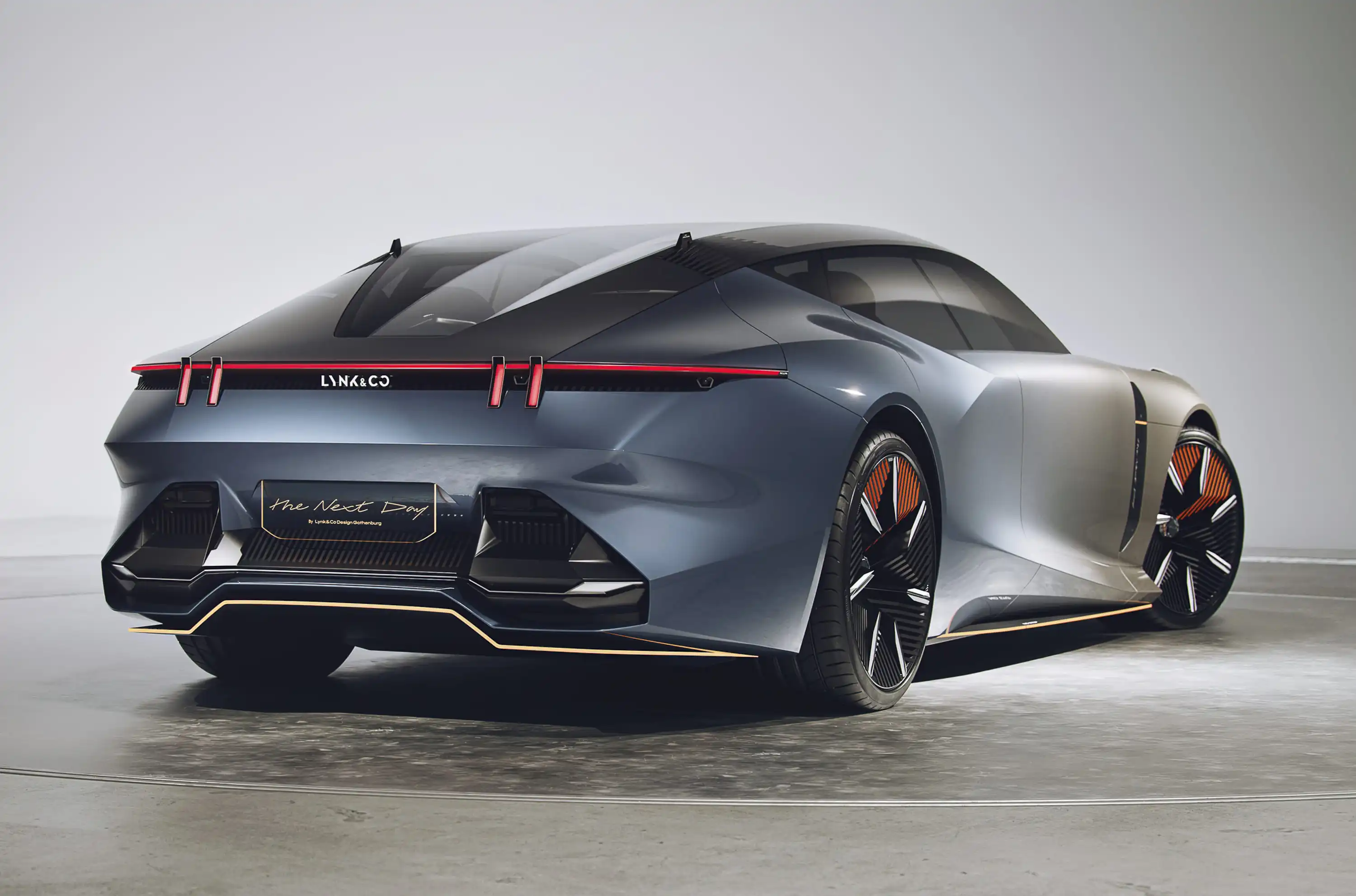 Для марки Lynk & Co, яка належить Geely і випускає в основному гібридні автомобілі, настає наступний день, причому цілком буквально: компанія представила концепт The Next Day, який відкриває нову еру дизайну. Шоу-кар є чотиридверним гран-турером, всі двері якого відчиняються вгору, причому задні ще й відчиняються проти ходу руху - нестандартне рішення для марки. Натомість у плані силових установок Lynk & Co залишився вірним собі: заявлені гібридні версії, з підзарядкою та без.