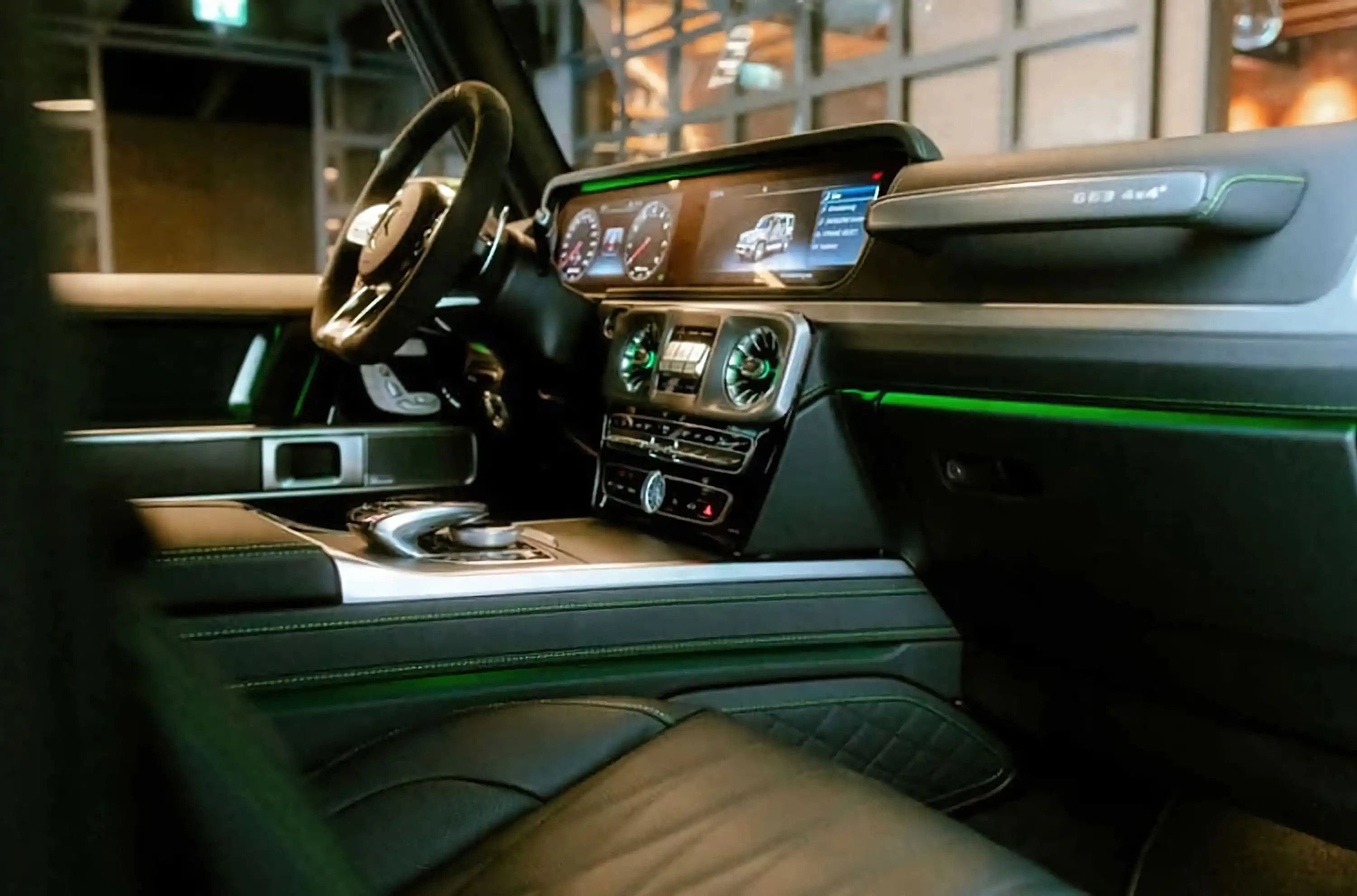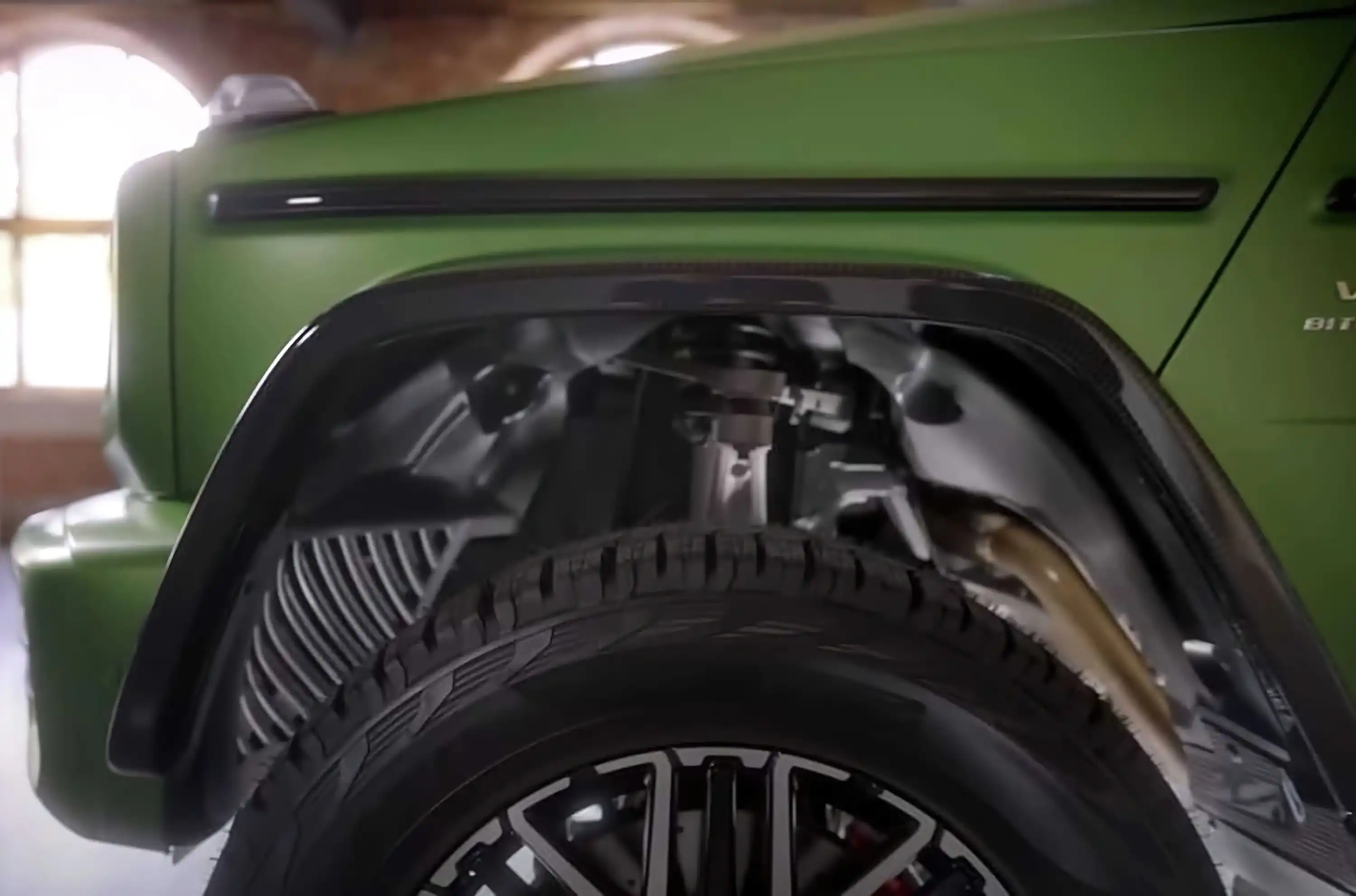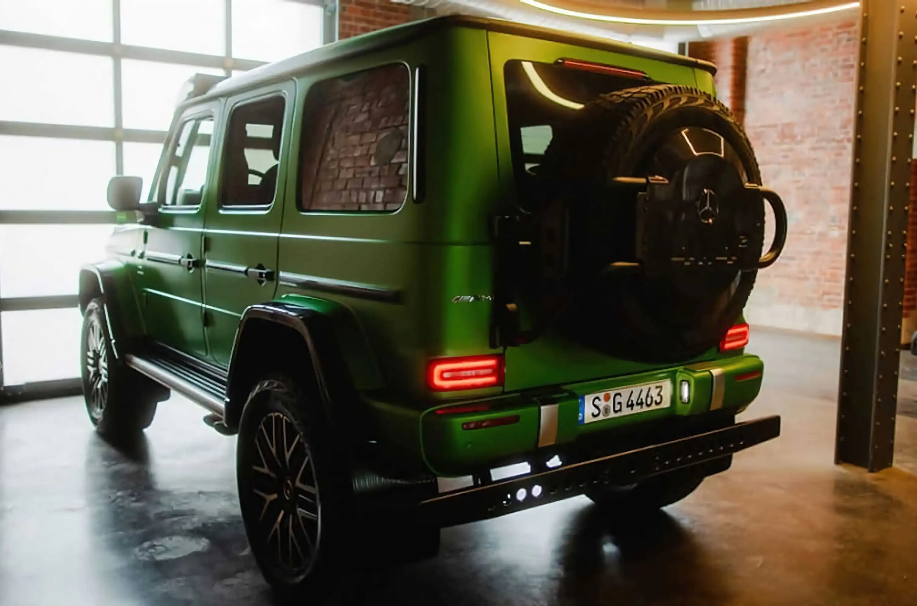 Також G 63 4x4? відрізняється 22-дюймовими колесами, світлодіодними лампами на даху, новим кожухом «запаски» та декором із видимого вуглепластику. Для оббивки салону використано шкіру «наппа» та мікроволокно Dinamica. Під капотом позашляховика стоїть стандартна «бітурбовісімка» 4.0, що розвиває 585 кінських сил і 850 Нм обертового моменту. Коробка – дев'ятиступінчастий автомат. До першої «сотні» G 63 4x4? прискорюється за 4,6 секунд, споживаючи в середньому 20 літрів бензину на 100 кілометрів.