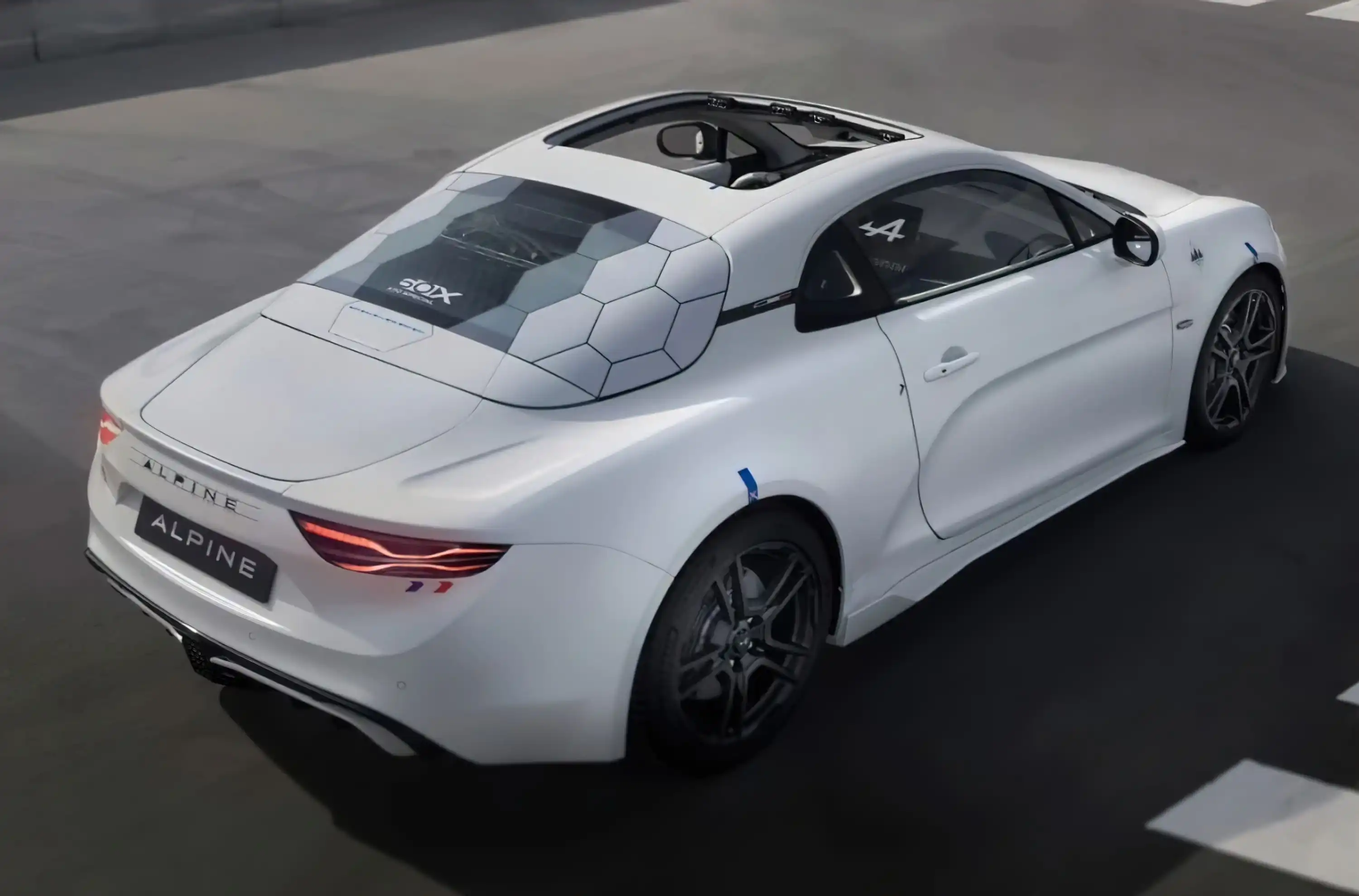 Головні зовнішні відмінності «батарейного» Alpine A110 E-ternite від паливної версії — патерн із шестикутниками на задньому склі та великий люк у даху, в каркасі якого застосоване вуглецеве волокно. Зрозуміло, немає у електрокара і патрубка вихлопної системи. У салоні різниця зводиться до більшого планшета мультимедійної системи на Android та аудіосистемі з вісьмома динаміками.