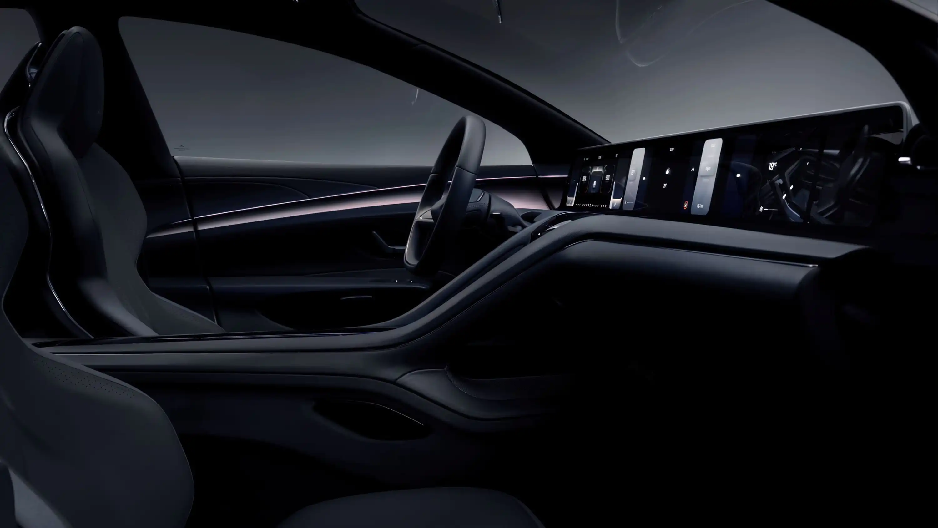Салон, як тепер модно, виконаний у стилі хай-тек мінімалізму та оброблений дорогими матеріалами — у прес-релізі підкреслено, що всі вони виготовлені на території Європи (тобто витрати на логістику мінімальні, економиться енергія, знижуються антропогенні викиди СО2). Передня панель має монолітне широкоформатне табло, яке може наполовину опускатися в надра панелі, залишивши водію та пасажирам лише вузьку смужку із необхідною інформацією.