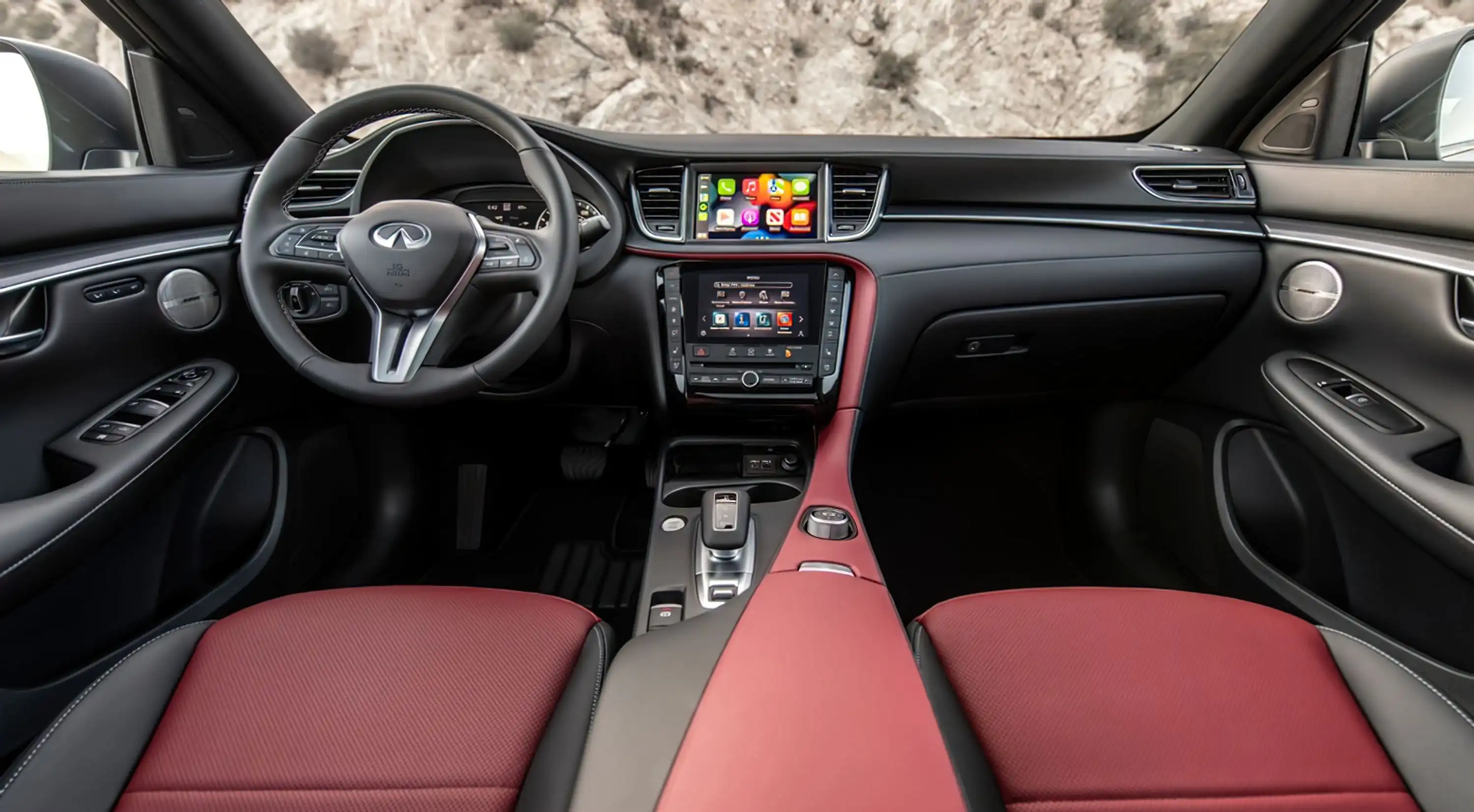 Головне – QX50 отримав нову версію Sport, вона ж QX50S. У цьому виконанні у кроса агресивніший передній бампер від купеподібного Infiniti QX55. Крім того, «спортсмен» відзначився чорним зовнішнім декором і наявністю чорних 20-дюймових коліс. У салоні QX50S також темне оздоблення плюс крісла оббиті напіваніліновою шкірою.