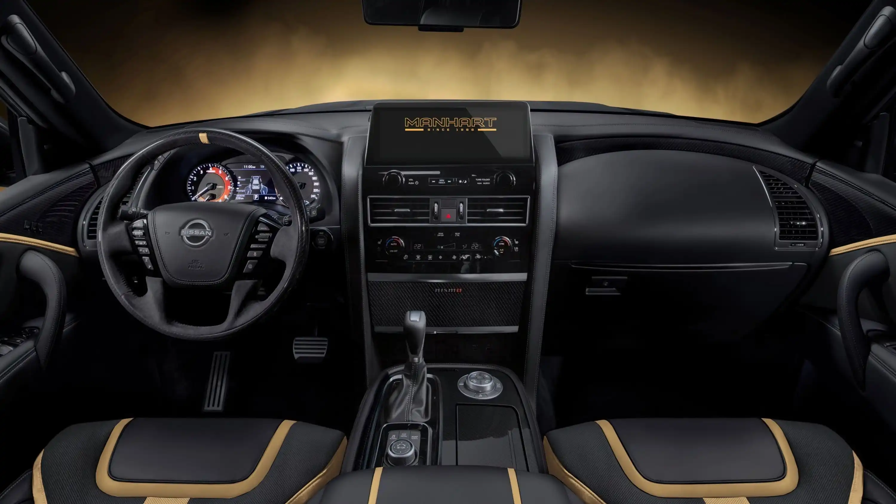 У Manhart вирішили, що заводський за обвіс Patrol Nismo є цілком самодостатнім і не стали його перекроювати, але червоний контурний декор замінили на золотистий, додали на боковини, капот і дах фірмові смуги Manhart, а також замінили штатні 22-дюймові колеса на ще більші 24-дюйми з ажурними спицями та золотавим забарвленням. Салон знову обшитий шкірою/алькантарою і щедро декорований вставками золотистого кольору, при цьому штатні вуглепластикові вставки збереглися.