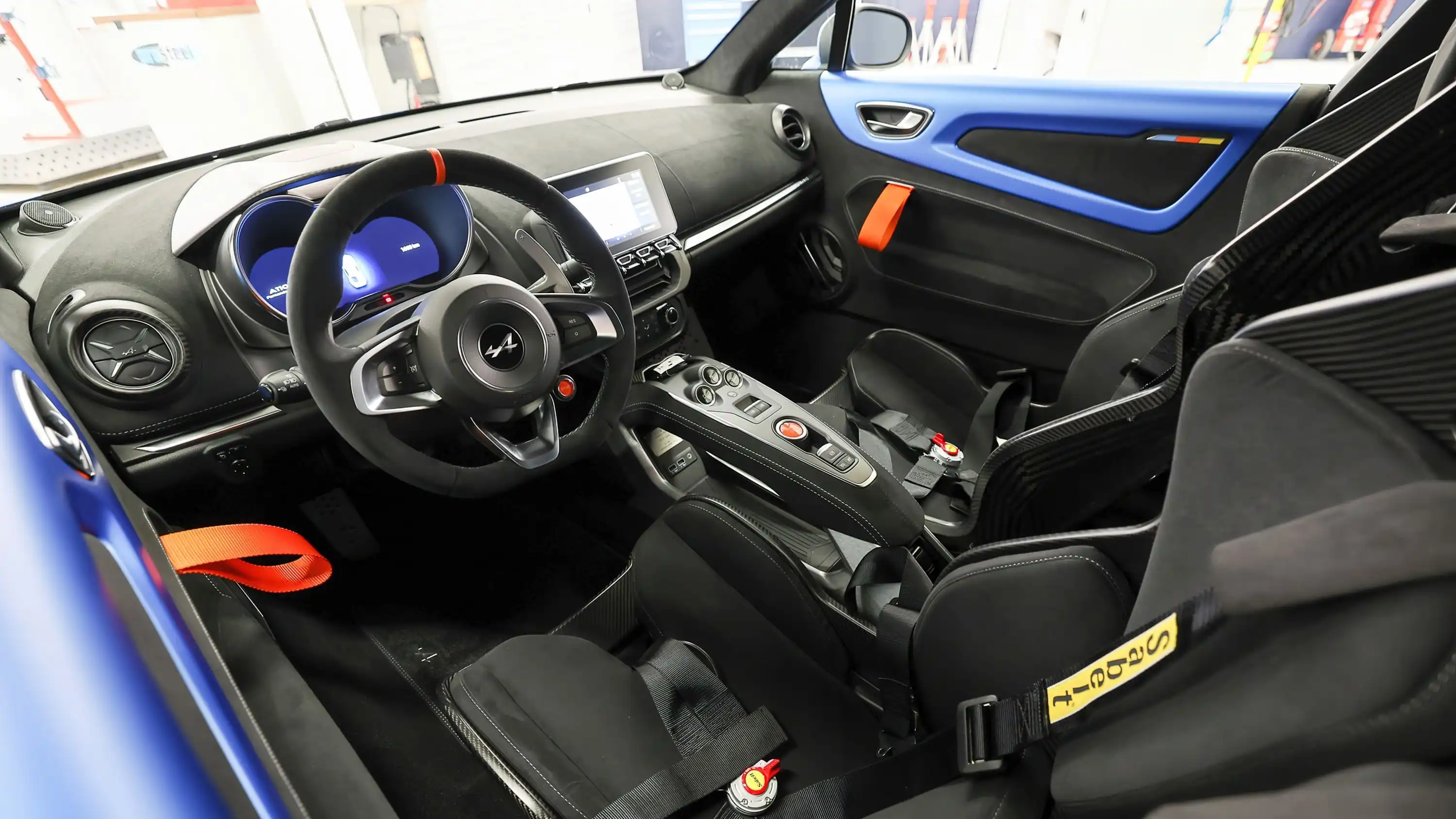 У салоні Alpine A110 R покупець отриає полегшені гоночні ковші Sabelt з 6-точковими ременями безпеки, оббивку з мікрофібри, хлястики замість стандартних дверних поручнів, номерну табличку автомобіля та вкладки телеметрії в меню бортового комп'ютера.