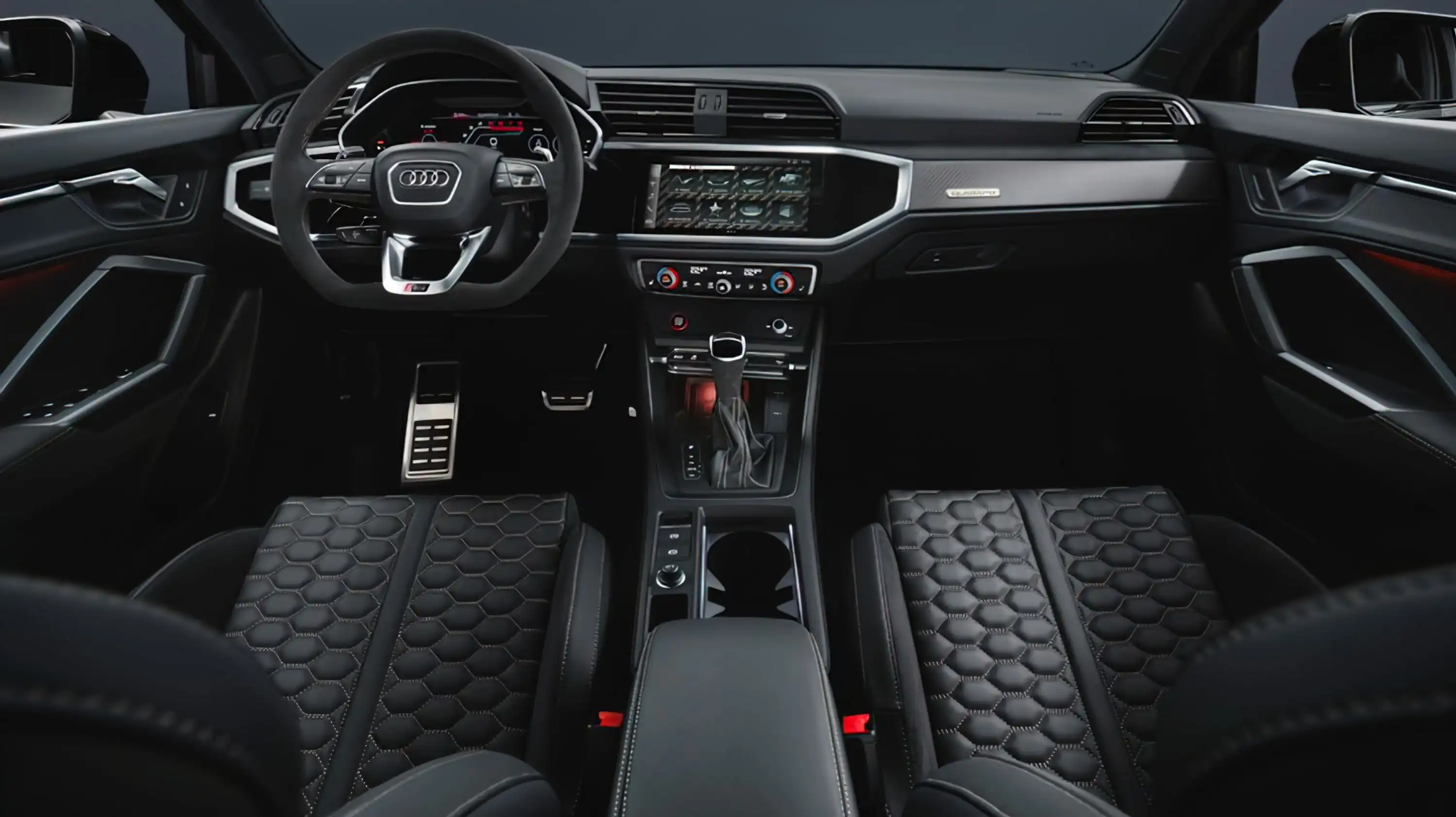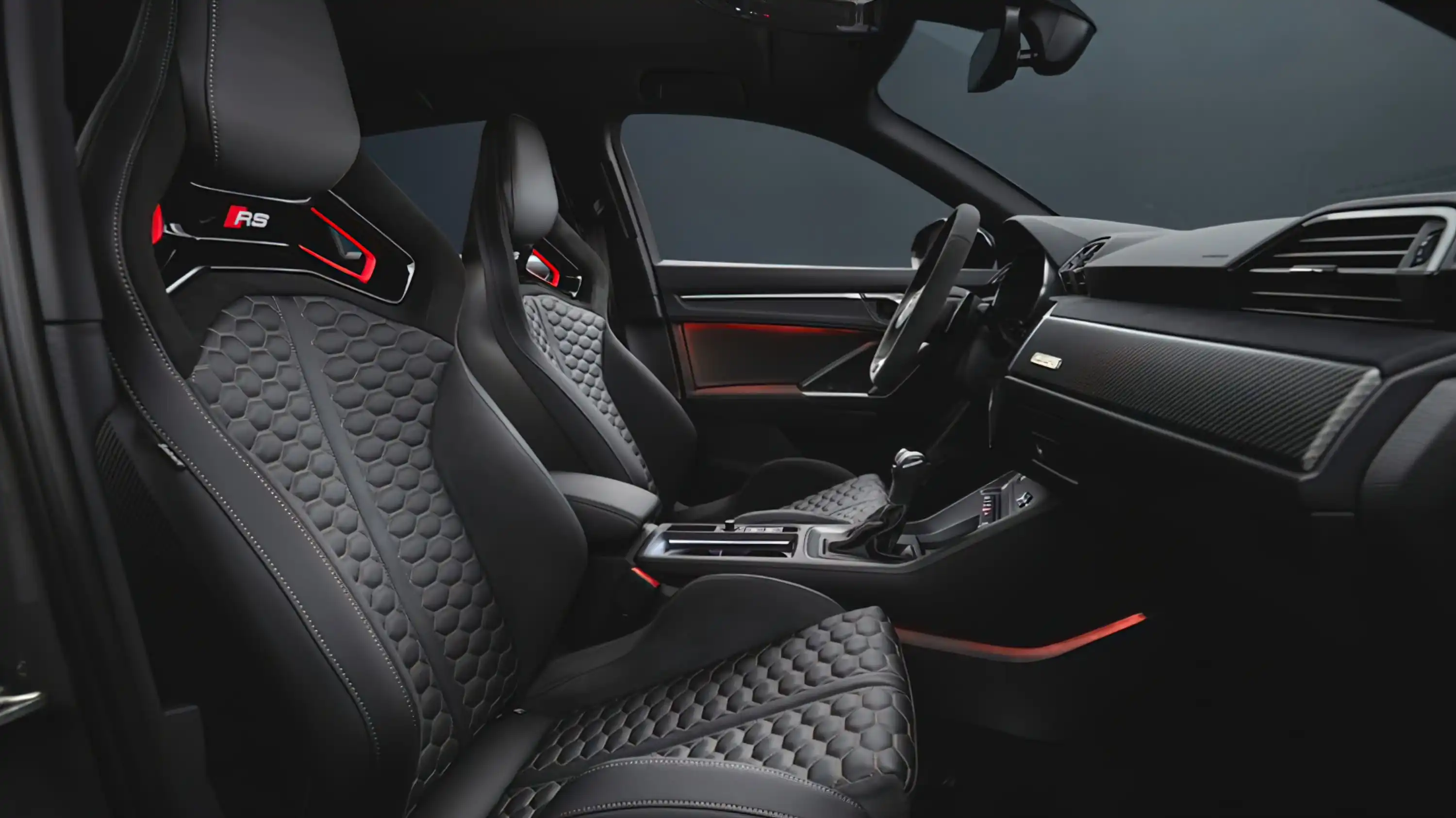У салоні Audi RS Q3 та RS Q3 Sportback у версії edition 10 years теж є відмінності. Головним з них є ексклюзивні передні ковшеподібні сидіння RS, оброблені комбінованою шкірою, їх спинки отримали матові чохли, створені з вуглецевого волокна. Крім того, в салоні теж є темні елементи декору і контрастна мідного кольору прострочка: на кріслах, центральному підлокітнику, внутрішній обробці дверей, рульовому колесі.