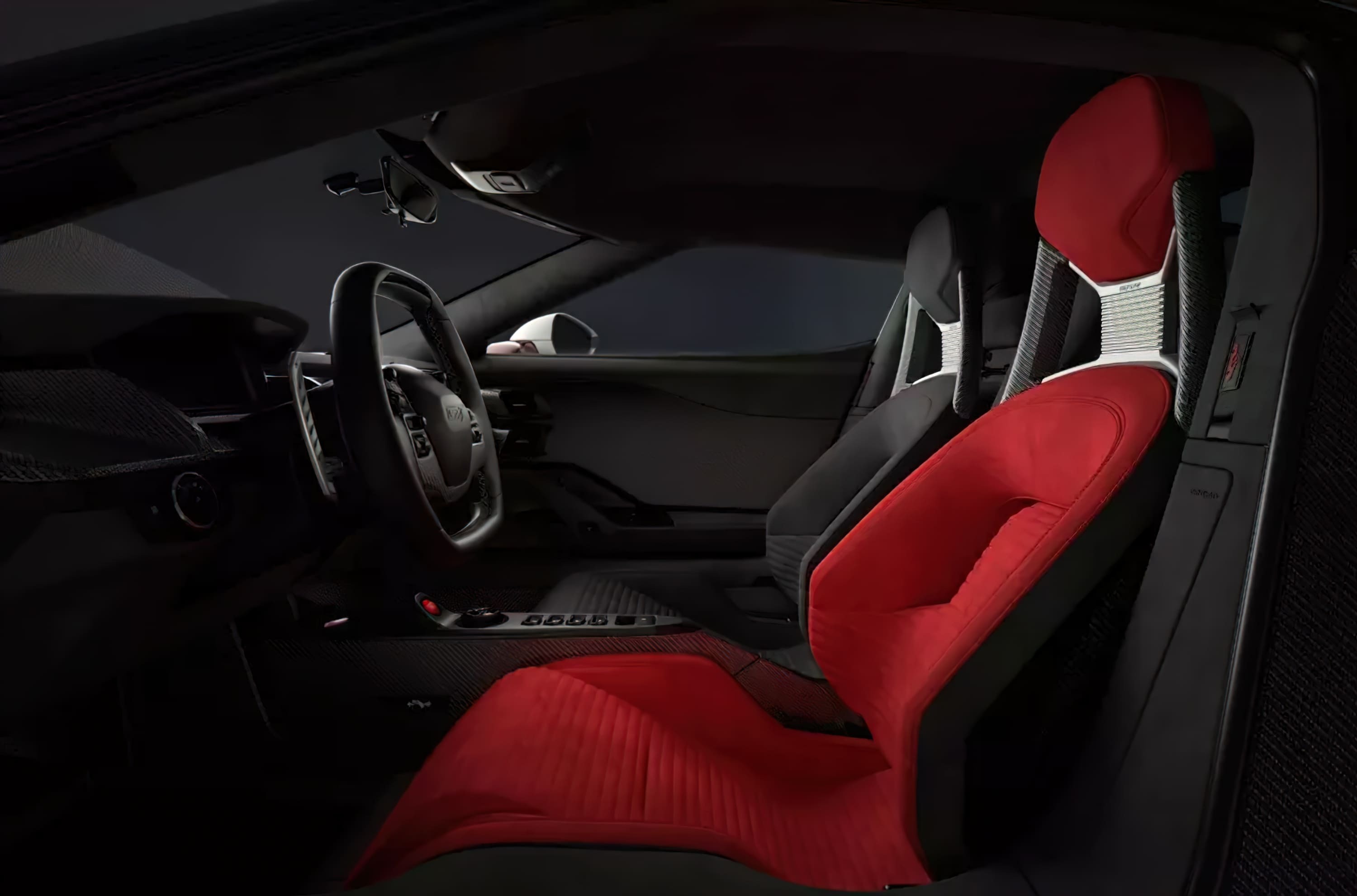 Що стосується салону, вибрати можна лише відтінок алькантари для оббивки сидіння водія та рядки на кріслі пасажира – синій чи червоний. Техніка стандартна: 3,5-літровий бензиновий V6 потужністю 669 кінських сил поєднується із семиступінчастою роботизованою коробкою передач Getrag.
